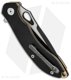 This model of the CIVIVI Aquila comes with a black G-10 handle, black blade, and gold stainless steel liners.