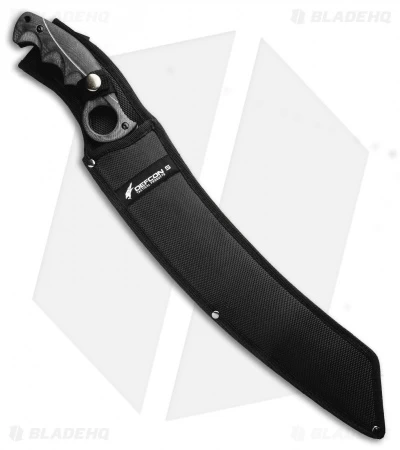 The Defcon 5 Tango Machete has is a big, tactical machete that’s great for outdoor and self-defense tasks. It’s got a long blade with a sweeping edge that makes slicing cuts easy, and a finger hole ensuring a reliable grip. The machete is made of a durable nylon, and has a snap closure.