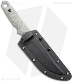 The Fox Knives Ryu comes from the FKMD (Fox Knives Military Division) line, and it has materials and build that prove it’s worthy of that distinction. The blade is made of premium Niolox stainless steel that can take a beating and remain functional. The knife has a hollow grind that aids in cutting power, and gives the edge longer life. the handle is textured and sculpted to fit nicely in the hand. The knife includes a kydex sheath. This model has a green micarta handle and a stonewashed blade.