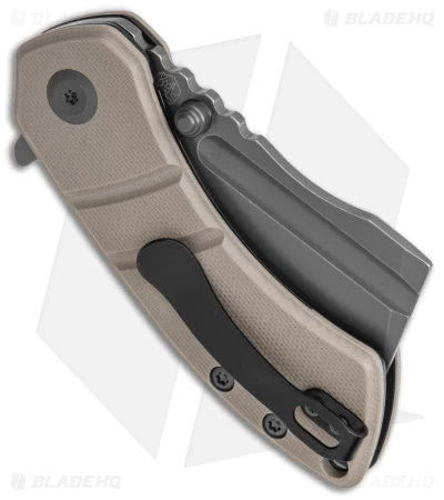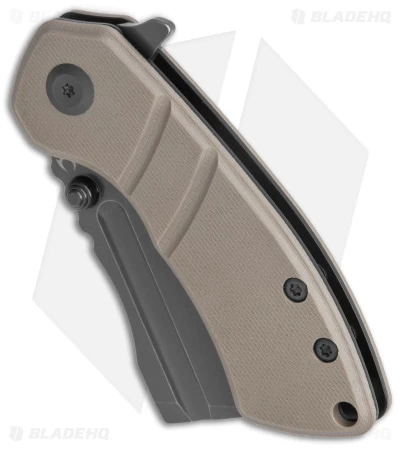 - Tan G-10 handle scales over steel liners.