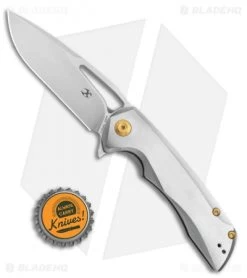 The Kansept Kryo is an EDC knife built with superb craftsmanship and utilitarian design. The handle is milled from titanium, and fits the hand beautifully. The blade has a gentle drop point profile that has some straight edge and some curved. The Kryo also has a reversible milled titanium pocket clip.