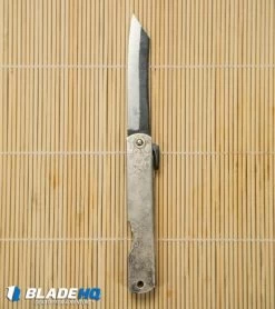 The Nagao Higonokami Koriwa Friction Folder comes outfitted with a satin finished blade and a brass handle with a silver coated finish. Get a sleek EDC folder with a traditional design made in Japan by Nagao Higonokami. It has a white steel reverse tanto blade with a razor sharp edge. The blade is fully concealed in the handle when closed, with the exception of the extended tang. Item includes a lanyard hole for convenient pocket carry.