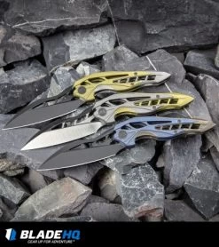 The WE Knife Co. Arrakis is another home-run design by knife maker Elijah Isham. Similar to it’s predecessor, the Eschaton, its frame is made from a single piece of titanium, while the upper section of the handle is outfitted with gold anodized titanium scales. The wharncliffe blade is made from Bohler M390 with a two-tone finish and eccentric cut-outs.