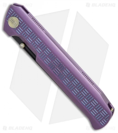 This Straight Up model is outfitted with a black finished blade and a purple titanium frame lock handle.